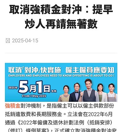 在香港,五月份開始,有一項營商政策轉變:取消強積金對沖,可能是引致近日結業裁員潮的一個誘因。