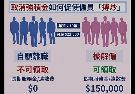 政府多次強調,取消強積金對沖後,企業裁員並沒有好處。是真的嗎?當然,聰明的企業家一定看到真相。簡單一個例子:5月1日後,舊員工即時享有不能對沖的長期服務金,但如裁員後,再聘新的員工,新員工要五年後才能享有長期服務金,一下幌子,便賺了5年的安全期。當然還有其他很多招數,但不講了,否則有教壞人之嫌。