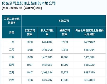 根據香港政府最新數據,截至2025年7月,在香港註冊的公司,上半年新成立達84,000多間,註冊公司總數已達149萬間,創下歷史新高。